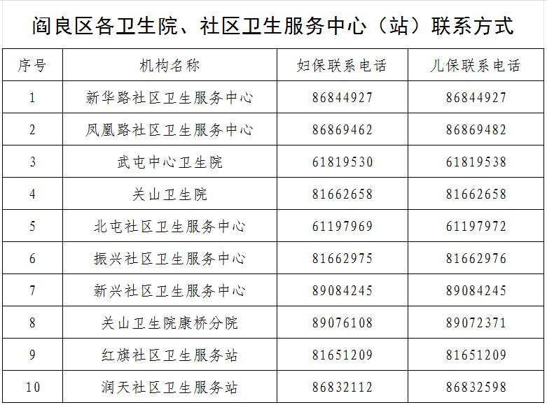 七、阎良区国家免费妇幼公卫项目服务机构及联系方式