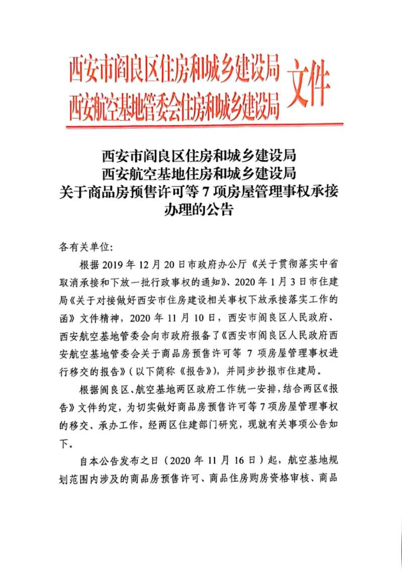 关于预售房许可等7项房屋管理事权承接办理公告