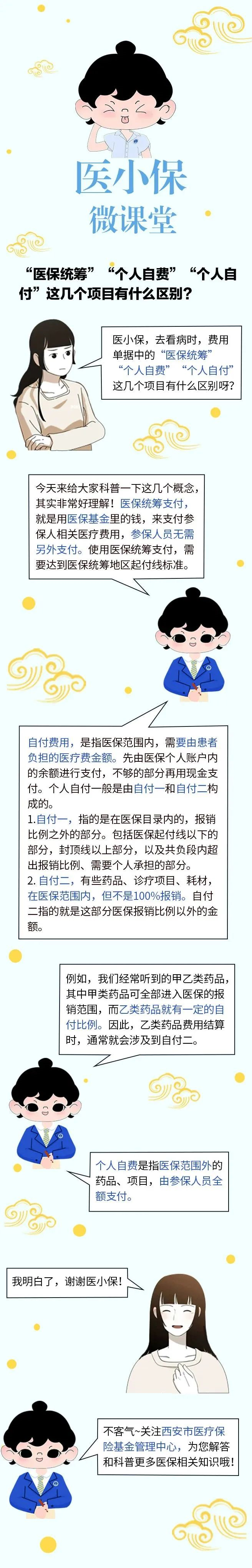 “医保统筹”“个人自费”“个人自付”这几个项目有什么区别?