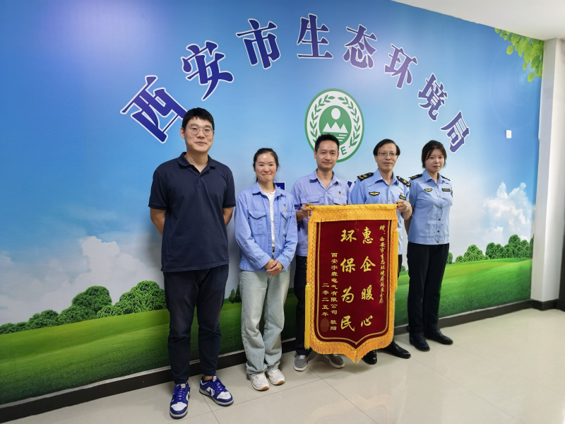 近日,西安宇森电气有限公司负责人为西安市生态环境局阎良分局送来“惠企暖心 环保为民”锦旗,对阎良分局工作人员的帮扶指导表示感谢。