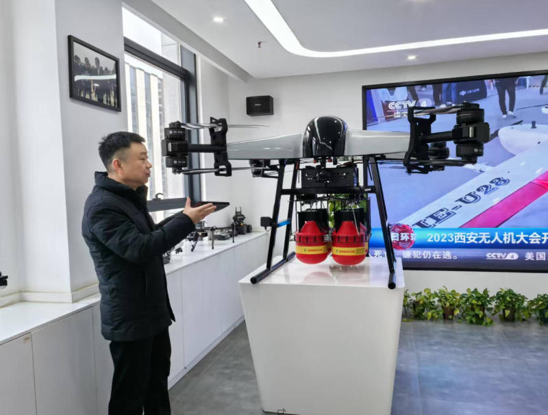 在调研过程中,西安天翼航空公司相关负责人详细介绍了公司各型号无人机的技术特点、性能参数以及在灭火救援中的应用场景。据介绍,该公司的多款无人机在森林火灾扑救、城市高层火灾救援等方面都展现出了独特的优势。例如,“大黄蜂”森林灭火无人机可飞行在火场上空,进行空中监测及投弹灭火。随后,双方就无人机装备在灭火救援中的应用现状、存在的问题及未来发展方向进行了深入的交流与探讨。区应急管理局主要领导对西安天翼航空公司在无人机技术研发和应用方面所取得的成绩给予赞赏,希望双方进一步加强合作,共同推动无人机技术在灭火救援工作中的广泛应用。同时,对无人机续航能力、抗干扰能力、高层灭火、无人机存放等进行深入探讨,希望西安天翼航空公司能够加大研发投入,不断提升无人机的性能和可靠性。