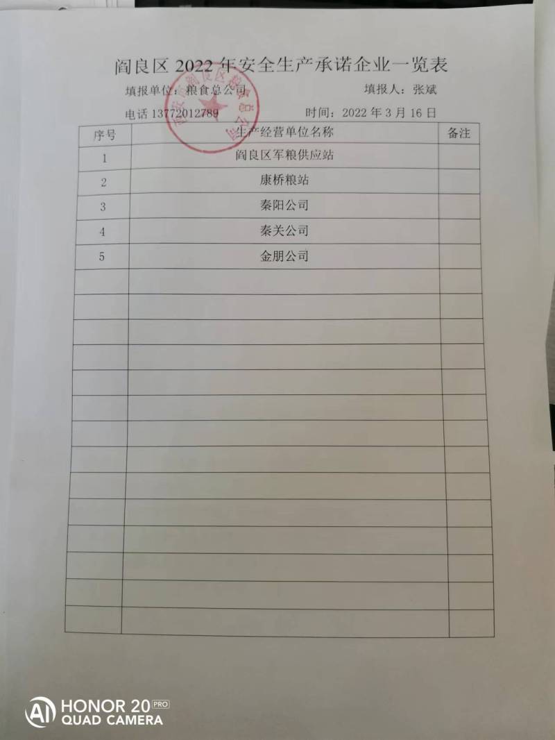 阎良区粮食总公司2022年安全生产承诺书公示