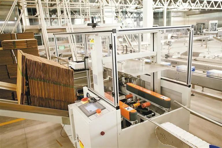 经过包装车间折叠封箱后,一件件羊乳产品将通过四通八达的物流系统销往全国各地。