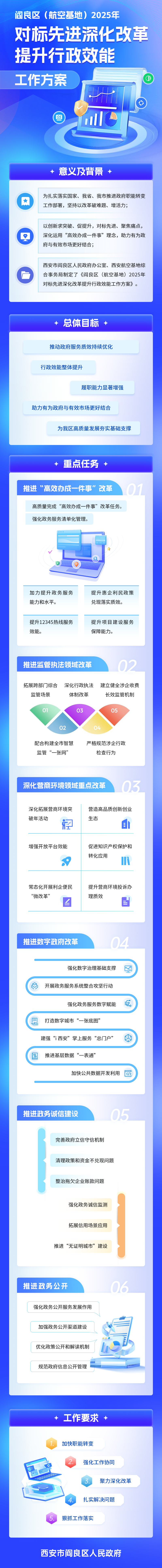 西安市阎良区人民政府办公室、西安航空基地综合事务局印发2025年对标先进深化改革提升行政效能工作方案的通知。