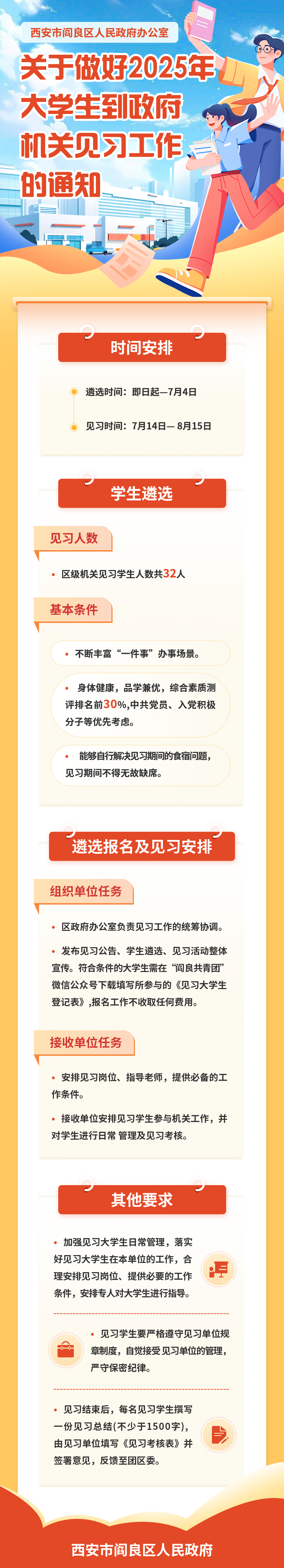 西安市阎良区人民政府办公室发布关于做好2025年大学生到政府机关见习工作的通知。