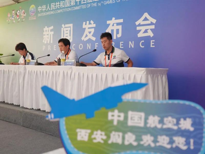 9月11日,十四运会滑板项目竞委会在西安·阎良石川河极限运动中心新闻发布厅举行十四运会滑板比赛赛后新闻发布会。经过两天紧张、激烈、炫酷的竞赛,分别产生了女子街式、男子街式、女子碗池、男子碗池四枚金牌,十四运会滑板比赛在西安·阎良石川河极限运动中心完美收官。