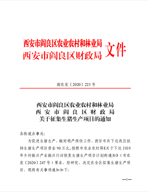 关于征集生猪生产项目的通知