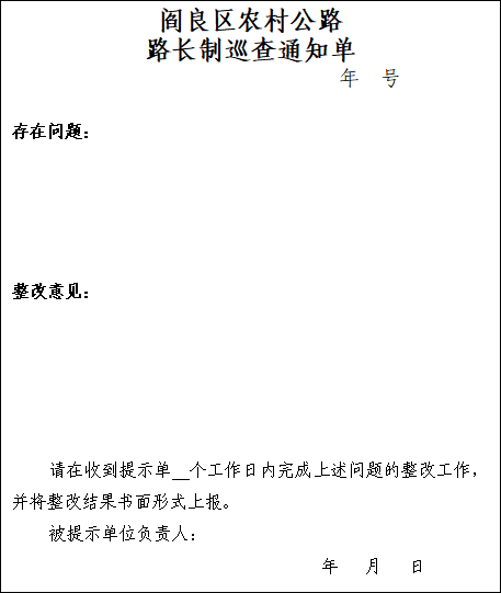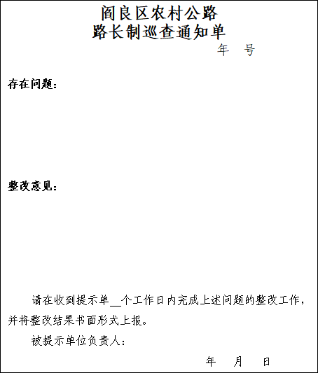 6.阎良区农村公路路长制巡查通知单