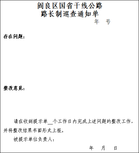 5.阎良区国省干线公路路长制巡查通知单