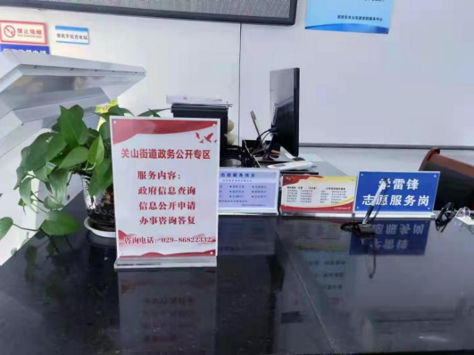 专区简介:关山街道办政务公开专区位于大厅内服务台,配备电脑、打印机等设备,主要提供依申请公开受理区、政府信息主动公开查询、政策咨询等服务。配有专门引导员,向群众提供咨询业务,讲解依申请公开流程和信息公开指南,并指导群众填写依申请公开受理表。