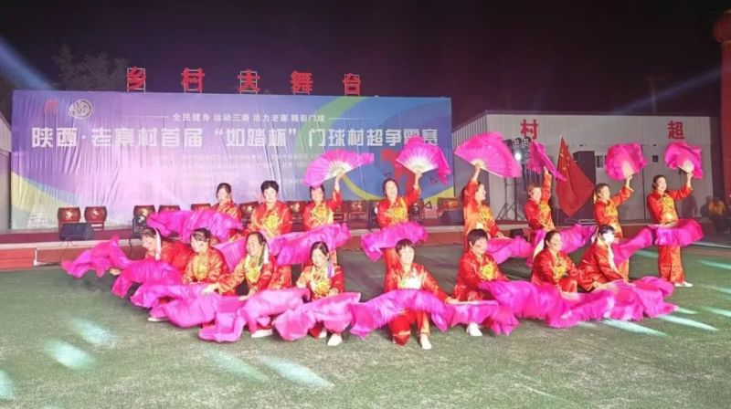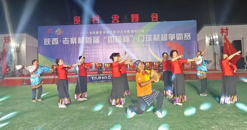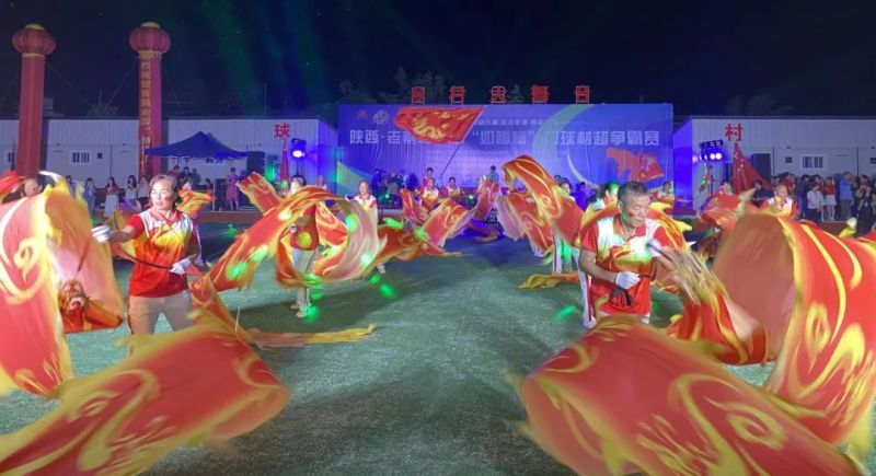 随着振奋人心的音乐响起,国旗护卫队庄严入场,裁判员、运动员方队紧跟其后、步履铿锵,全场肃立,奏唱国歌后,村超赛前文艺汇演便拉开帷幕。全场深情唱响《我和我的祖国》,整齐嘹亮的歌声和热闹欢腾的《龙腾盛世》舞龙表演将现场气氛点燃!秦腔经典曲目《梁秋燕》、老寨鼓舞《红红火火总是年》、锅庄舞《舞动的民族风情》等一个个精彩节目依次登场,全场尽情畅享乡村文化艺术的狂欢!