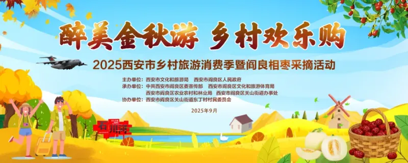 金秋送爽,硕果飘香!2025西安市乡村旅游消费季暨阎良相枣采摘活动将于9月25日上午10:00-12:00在关山街道东丁村相枣公园热闹启幕,诚邀您共赴这场秋日之约!