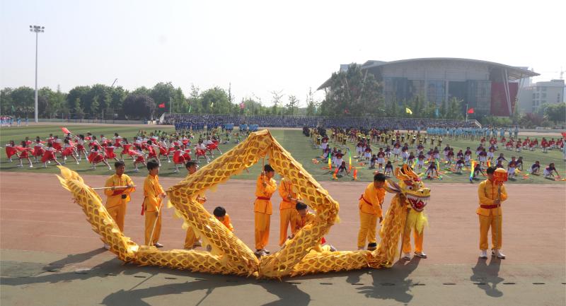 举行升旗仪式,副区长马辉宣布运动会开幕,区教育局党委书记、局长张立志致开幕词,运动员代表张艺轩同学、裁判员代表王亚春老师进行宣誓。全区中小学校学生进行鼓号表演《队旗飘扬鼓号铿锵》、武术《藏龙卧虎》、啦啦操《向快乐出发》、团体表演《壮丽的诗篇》《健康快乐动起来 龙腾龘龘向未来》《青春未来》等体育艺术成果展示。