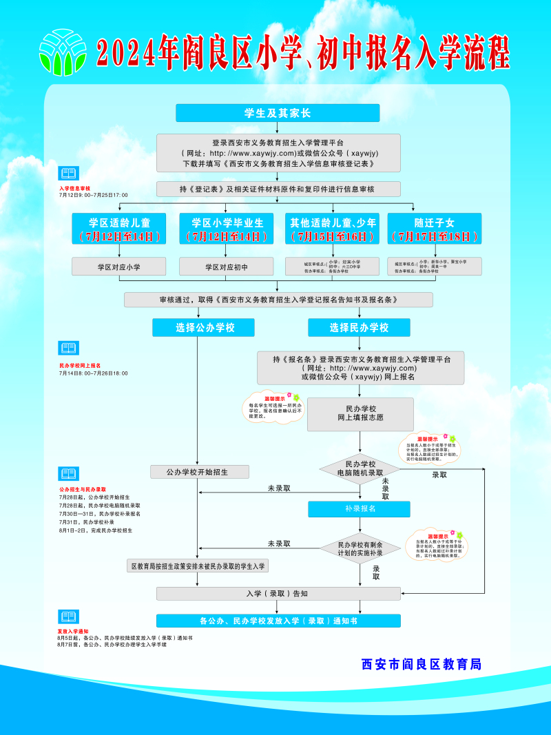 2024年阎良区小学、初中报名入学流程如下: