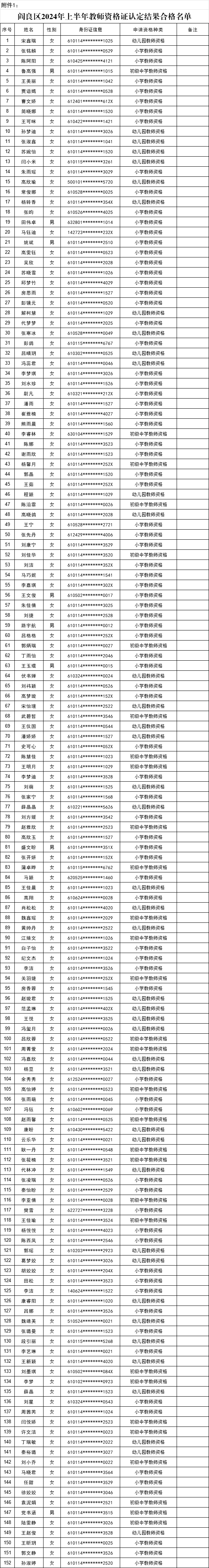 1.阎良区2024年上半年教师资格证认定结果合格名单