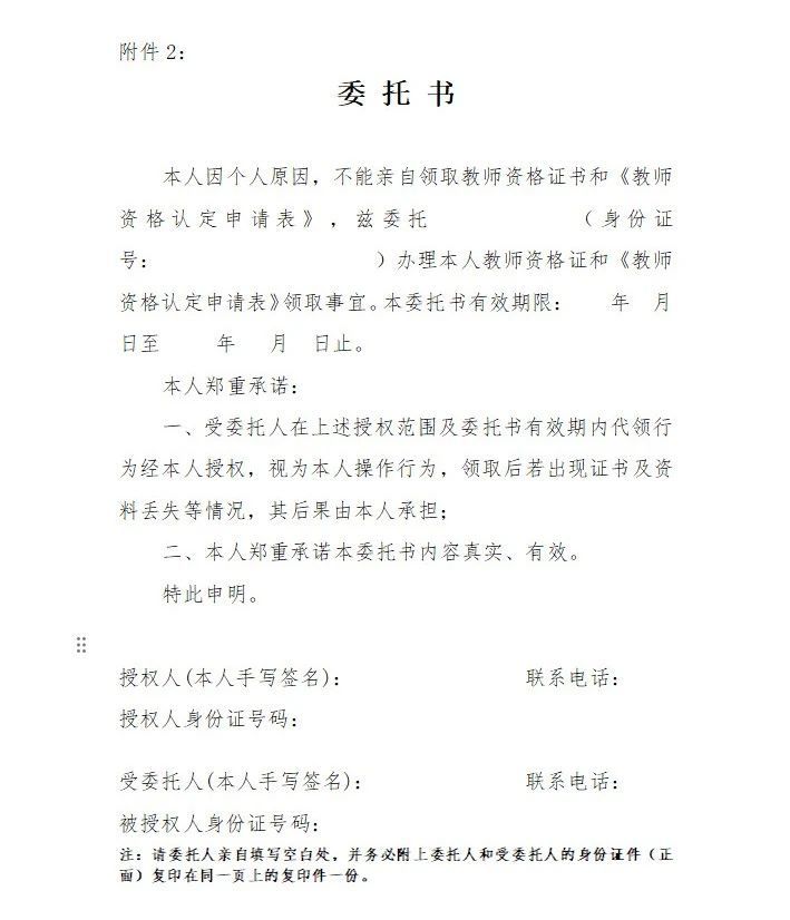 (3)集中领取时因特殊原因本人不能领取证书需要代领的,本人填写委托书(见附件2),由受委托人携带以下材料领取:
