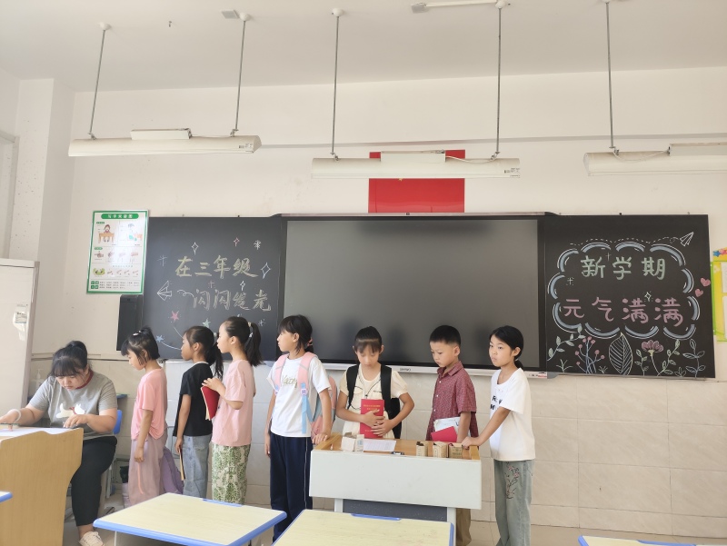 红丰小学:报到当天,老师们早早地来到了学校,精心布置内容丰富、形式多样的黑板报,为同学们营造了一个良好的开学氛围;同学们排队入校、秩序井然,在老师的引导下,各班有序地进入教室,满怀期待地迎接新学期的开始;班主任老师迅速进入角色,及时对学生进行开学第一课,帮助孩子们找准定位,促使同学们以最佳的精神状态迎接新学期的挑战。