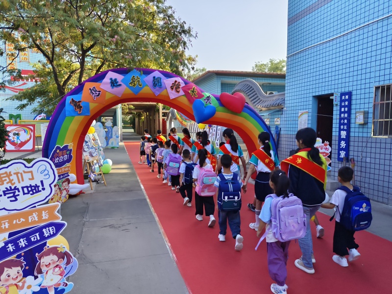 迎宾小学:8月31日上午,迎宾小学举行“爱润童心·筑梦启航”一年级新生入学仪式。一年级的小同学们拉着爸爸妈妈的手,伴着轻松明快的旋律,兴高采烈地走进校园,学校的老师、高年级的哥哥姐姐们分立校门两侧,用亲切的笑容和温暖的话语迎接每一个可爱的新面孔。孩子们怀揣着对美好未来的憧憬,签收属于自己的入学证书,穿过成长之门,用爱承载希望。