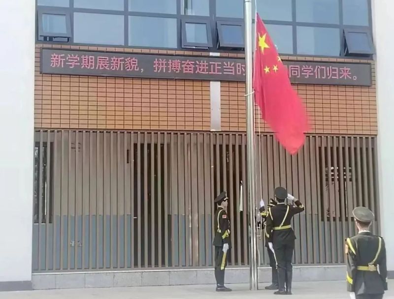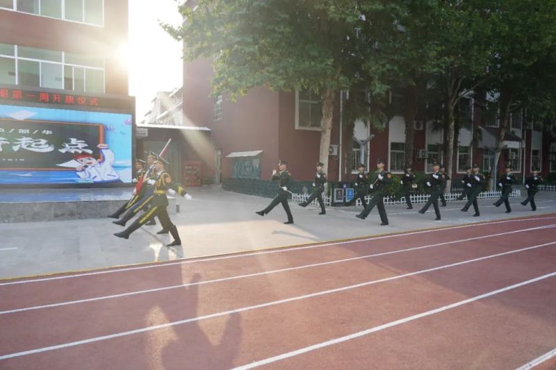 师生齐聚操场,举行新学期升旗仪式。希望在新学期里,以国旗为指引、以梦想为帆、以奋斗为桨,在知识的海洋中奋勇前行、携手共进,为创造更加美好的未来努力拼搏!