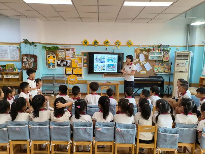 开学首日,为孩子们创设了一座“星宝火车站”,一起和“星宝”踏上新旅程!孩子们在“星宝火车站”体验到了“重逢”,发现“新家”的变化,品尝久违的美食……新学期的“第一课”邀请区交警大队警官为幼儿进行了“交通安全第一讲”;各班围绕爱国守法、文明礼仪、暑期趣事、新学期展望等方面,开展形式多样的课程内容。