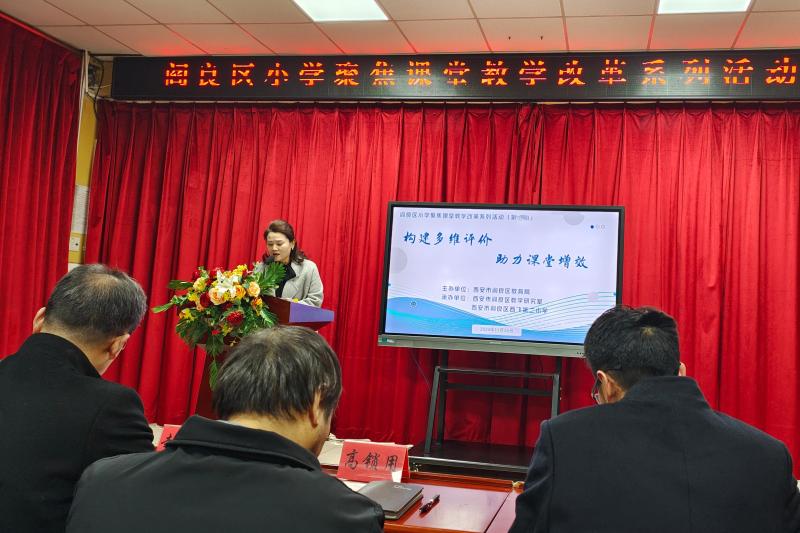 活动伊始,西飞二小校长闫虹发表了热情洋溢的致辞,介绍了学校以多样化评价推进课堂教学改革的探索和尝试及改革成果。区教育局党委委员高锁用肯定了西飞二小教育教学改革工作,希望全区各校聚焦课堂、创新实践,提高课堂教学质量,建设阎良好课堂。