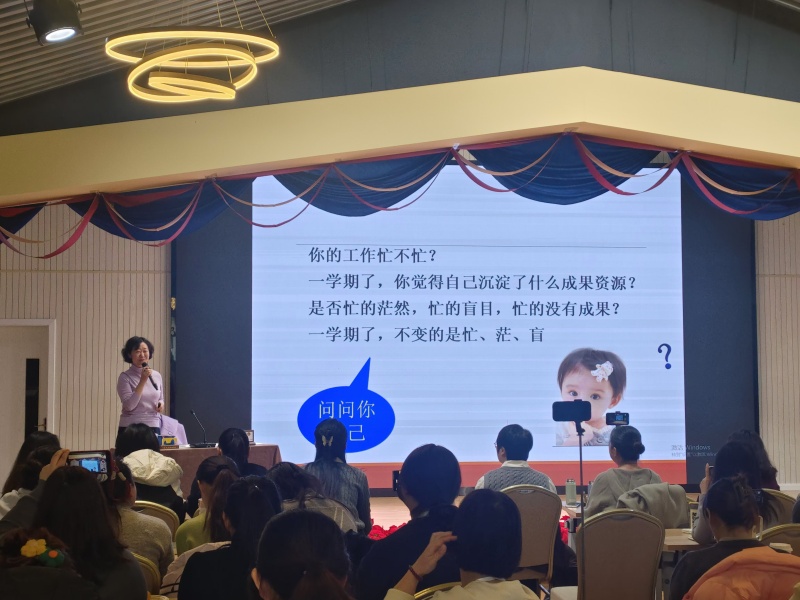 科研之路任重而道远,王怡教授以《幼儿园教师小课题研究》为主题从教育研究及其现实困境、小课题研究、幼儿园教师在科研工作中遇到的难题、如何制定研究方案四个方面进行课题专题讲座,讲座中以理论为指导,以实践案例为支撑,将小课题的研究方法及注意事项做了详细的讲解,进一步强化教师教育科研意识,助力幼儿园教科研工作发展,为全区教科研工作注入新活力。