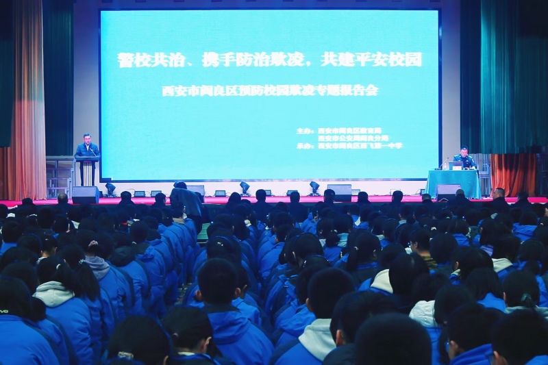 为进一步营造安全、和谐的育人环境,增强学生自我保护意识和能力,2月21日下午,阎良区教育局联合公安阎良分局在西飞一中召开“警校共治、携手防治欺凌,共建平安校园”预防校园欺凌专题报告会。
