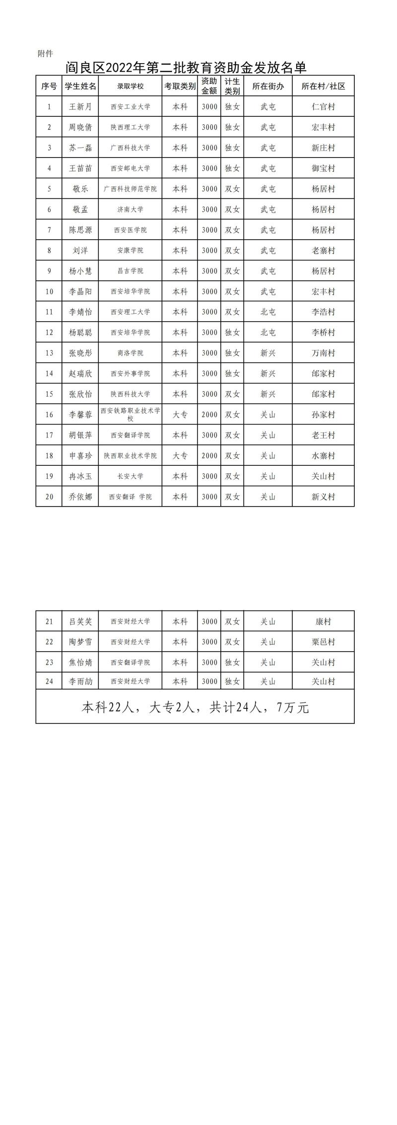 阎良区民政局关于对2022年第二批教育资助金享受人员公示的通知