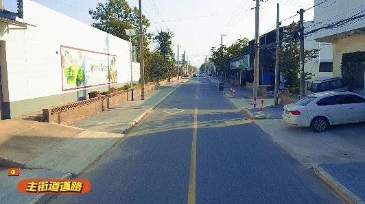 主街道道路两侧提升:1.对主干道2.6公里道路进行硬化、道沿铺设;2.对弱电线缆管网进行建设;3.在主街道两侧安装路灯。