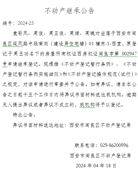 不动产继承公告编号:2024-23
