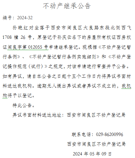 不动产继承公告编号:2024-32
