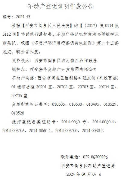 不动产登记证明作废公告 编号:2024-43
