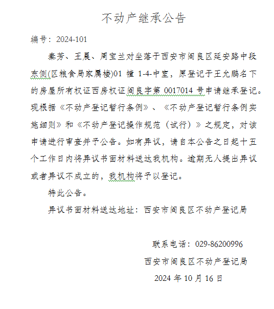 本公告就不动产继承事宜进行公示。内容涉及相关不动产的具体信息及继承情况,以保障相关权益人的合法权益。