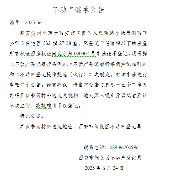 不动产继承公告 编号:2025-56