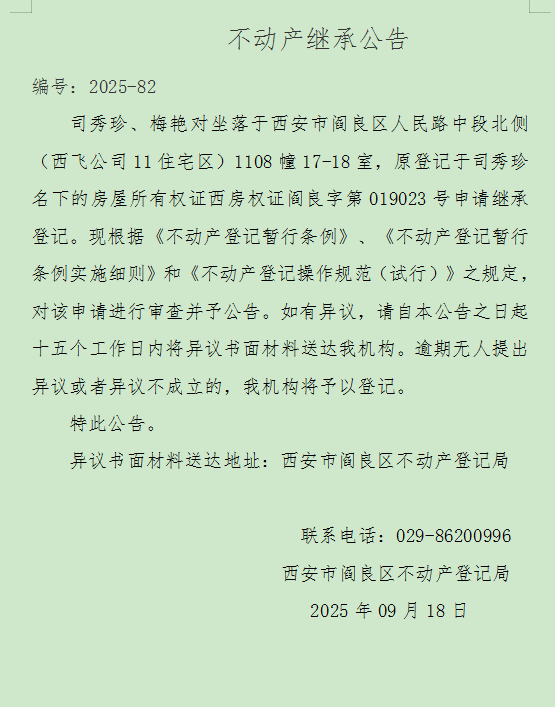 不动产继承公告 编号:2025-82