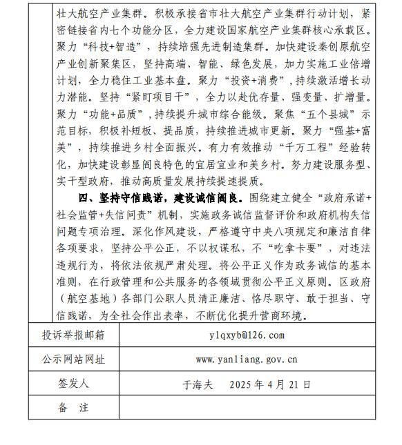 阎良区人民政府(航空基地管委会)作出政务诚信承诺