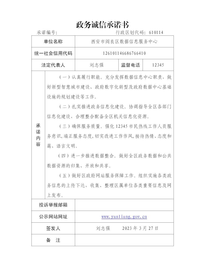 西安市阎良区数据信息服务中心政务诚信承诺书
