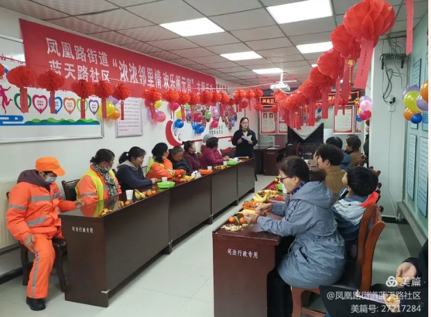 2月25日下午,凤凰路街道鸿飞社区党员群众欢聚一堂,闹元宵、猜灯谜、话家常。