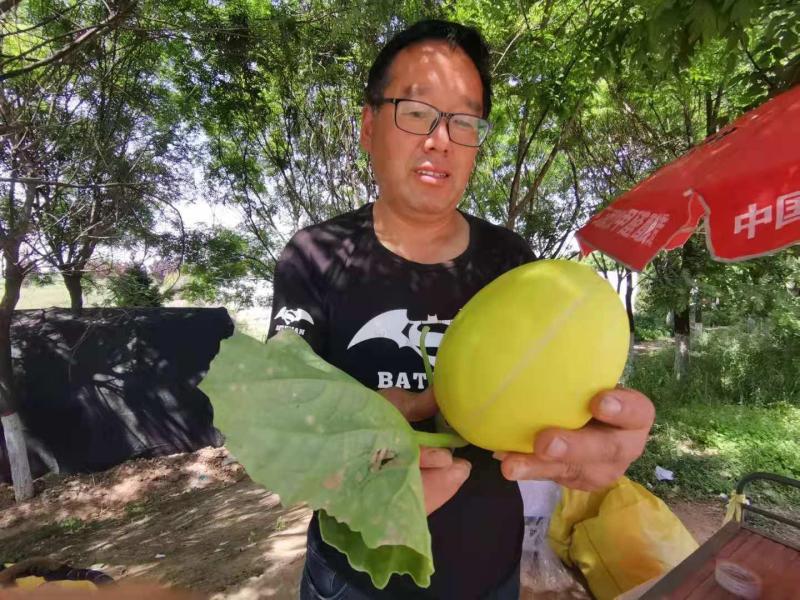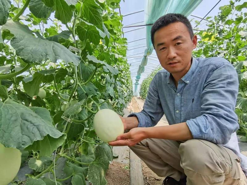 杨建朋和他种植的甜瓜新品种“玉菇”