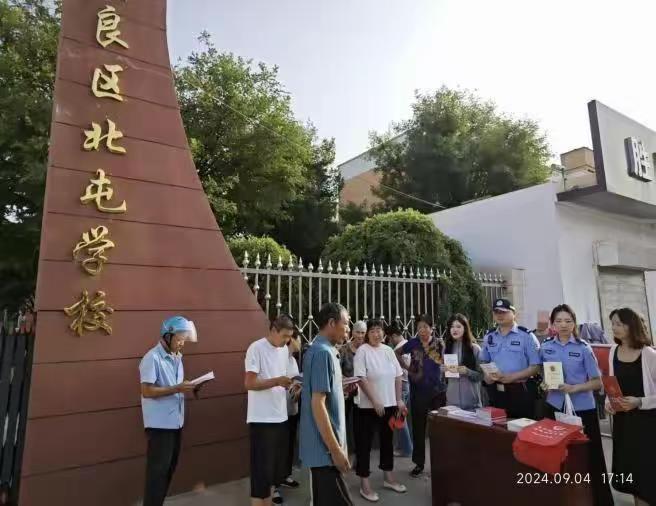金秋开学季,普法正当时。为进一步增强青少年法治意识和自我保护能力,引导青少年知法守法,护航青少年身心健康成长,营造平安、和谐的校园环境,9月4日,北屯街道联合辖区司法所、派出所在北屯中心小学外开展普法宣传活动。