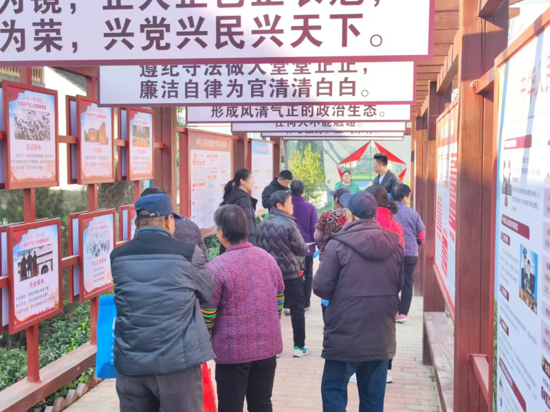 司法所工作人员沿着法治长廊,为村民们详细介绍长廊展示的宪法发展历程、重要条文等内容,图文并茂的展示形式让村民们更直观地感受到宪法的庄严与神圣。