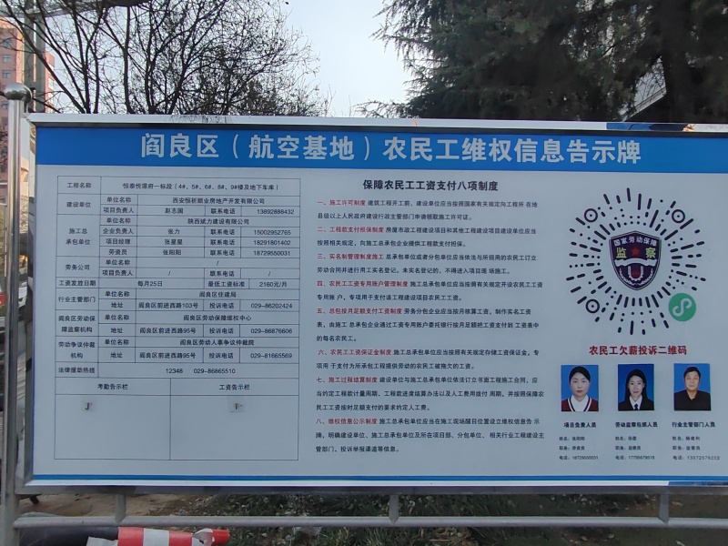 工地现场也可看到张贴的农民工维权信息告示牌,确保劳动者遇到欠薪问题第一时间进行维权。负责人表示,项目开建以来,无一起拖欠农民工工资的情况发生。