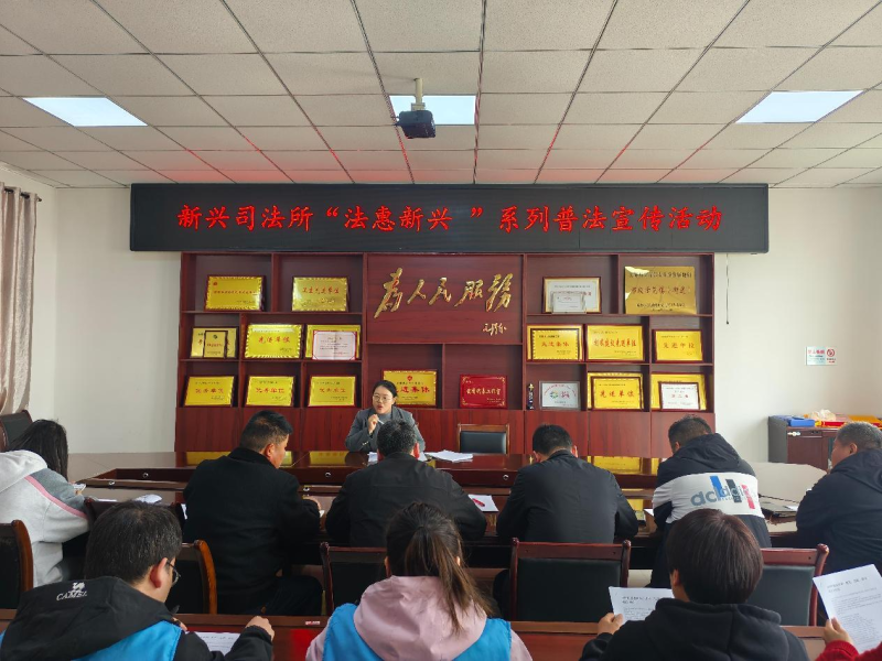 为进一步提高群众法治意识,培养法治精神,推进社会法治建设。3月31日,新兴司法所开展了“法惠新兴”系列普法宣传活动,特邀陕西洪振律师事务所梁律师讲解授课。各村人民调解员、法律明白人、网格员等共30余人参加。