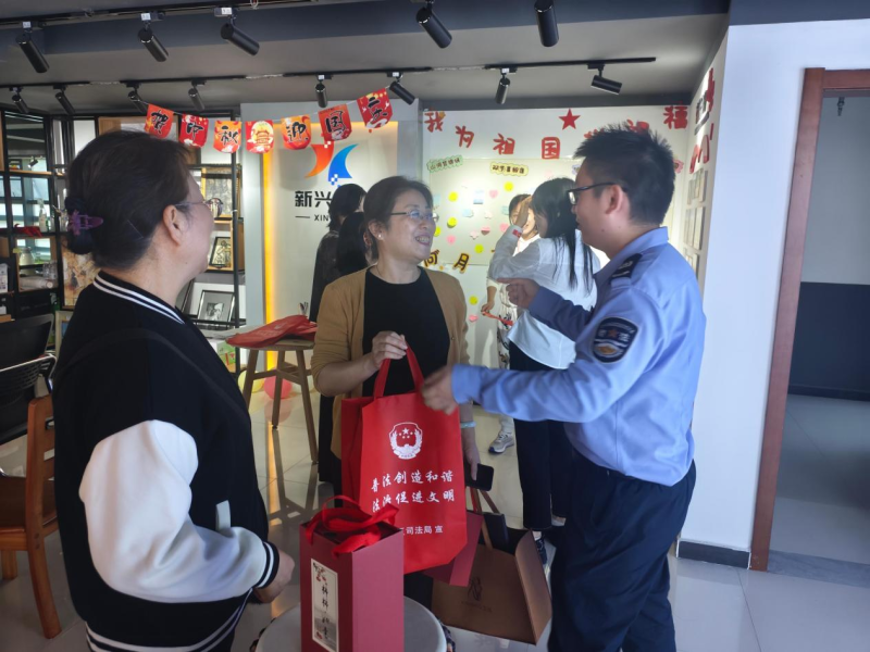 为营造欢乐祥和、法治文明的节日氛围,充分发挥法治宣传教育在维护社会稳定中的基础性作用。9月25日下午,新兴司法所联合航新社区开展行动,将普法宣传与节庆关怀相结合,开展“欢度双节”专题普法宣传活动。