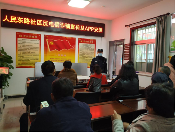 12、为有效遏制电信网络诈骗高发态势,切实提升辖区群众防骗识骗能力,筑牢反诈“防线”,近日,人民东路社区五色服务队之蓝色平安建设志愿服务队,联合反诈民警王警官再次开展反诈宣传。人民东路社区党支部积极落实“大走访、大调研”“我为群众办实事”等为民服务活动,将学党史与送服务相结合,推进党史学习教育走深走实。