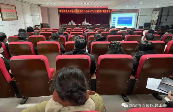 9、12月14日下午,阎良区总工会召开学习贯彻党的十九届六中全会精神专题报告会,特邀市总工会经审部部长杨艳红同志作宣讲报告,全区70余名工作人员及经审干部参加。